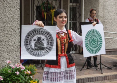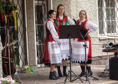 Po Mszy Św. mogliśmy przenieść się na Kurpie, w czym pomogło nam trio Kurpianek „Śpiewu Przyczyna”, które z pasja wykonały pieśni z Puszczy Zielonej. W pieśni przeprowadziły nas przez cały rok obrzędowy rozpoczynając od adwentu. Nie zabrakło skocznych melodii. Paniom udało się zachęcić do tańca widzów, porywając ich do skocznego „konika”.
