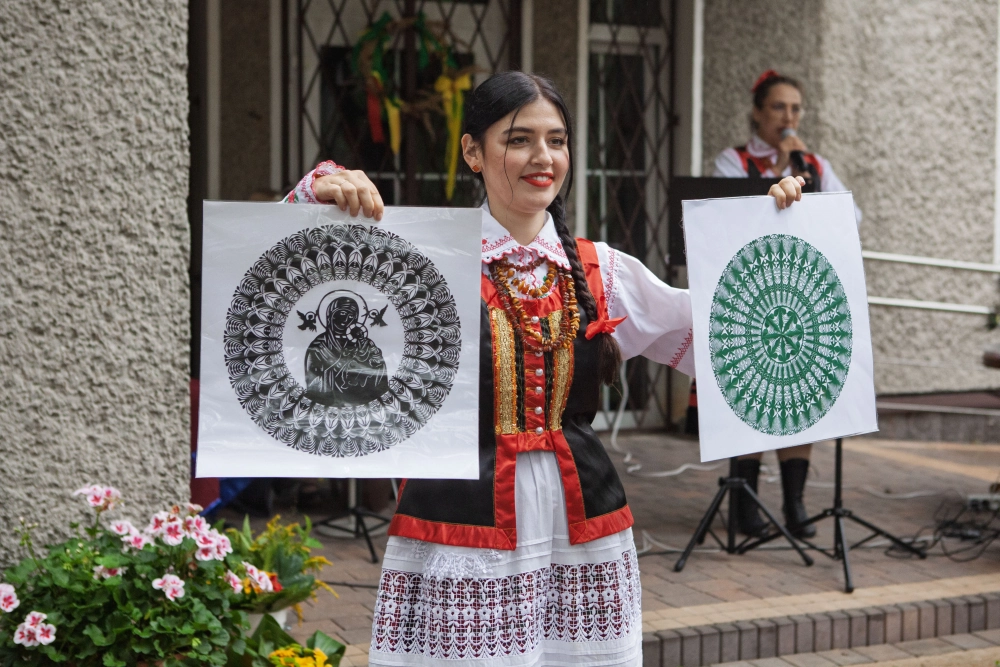 Po Mszy Św. mogliśmy przenieść się na Kurpie, w czym pomogło nam trio Kurpianek „Śpiewu Przyczyna”, które z pasja wykonały pieśni z Puszczy Zielonej. W pieśni przeprowadziły nas przez cały rok obrzędowy rozpoczynając od adwentu. Nie zabrakło skocznych melodii. Paniom udało się zachęcić do tańca widzów, porywając ich do skocznego „konika”.