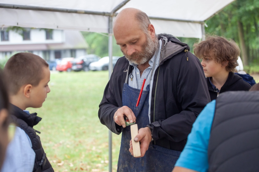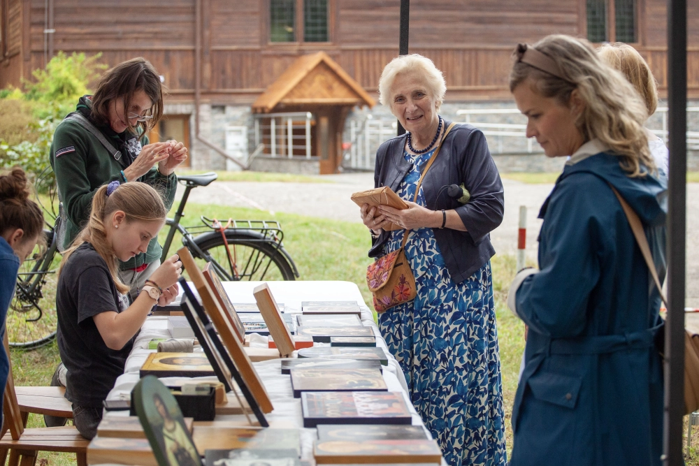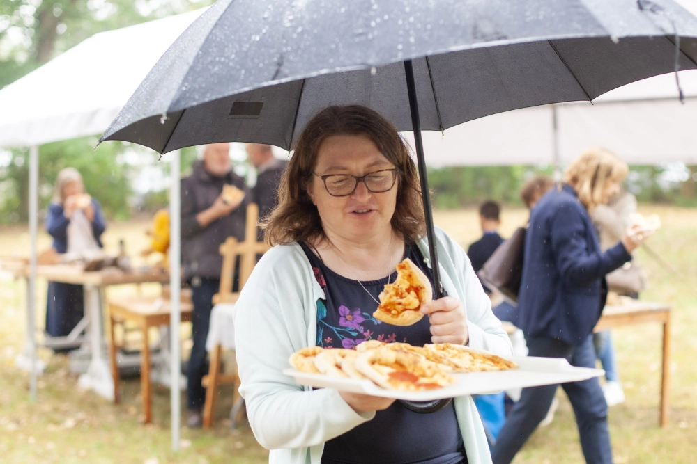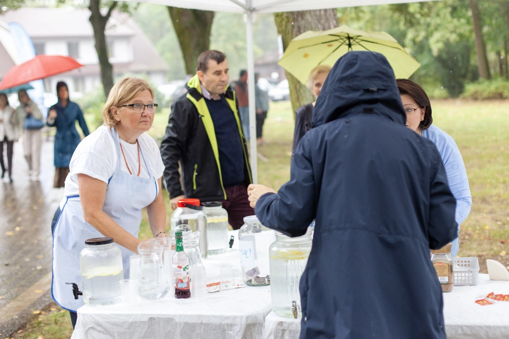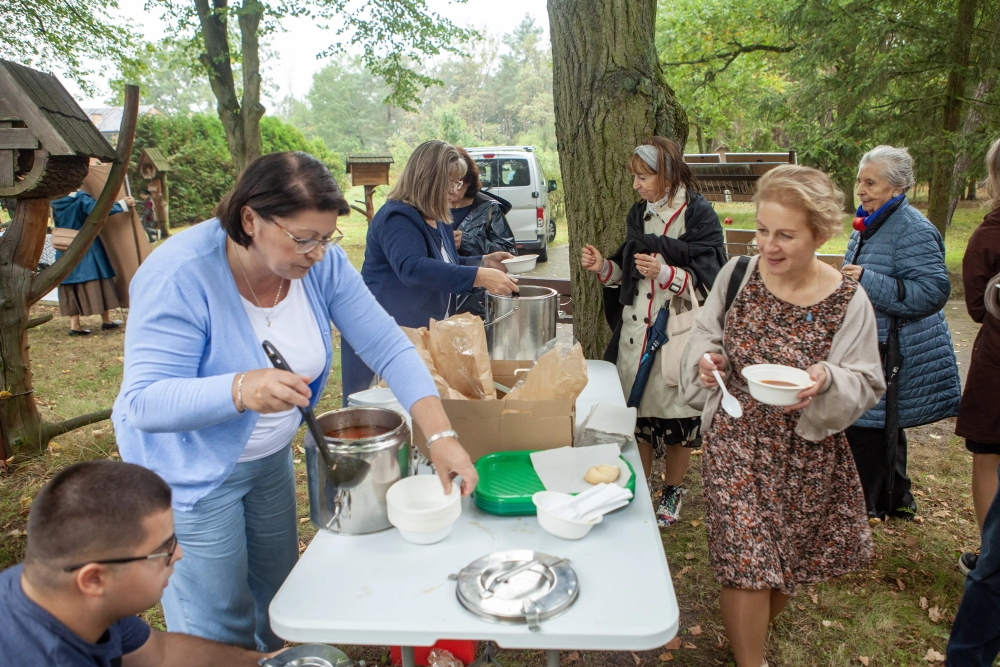 Po części artystycznej uczestnicy pikniku mogli posilić się ciepłym posiłkiem, napić herbaty czy kawy. Schronienie przed deszczem, który wisiał w powietrzu w czasie występu zespołu, zapewniły nam rozstawione dzień wcześniej namioty. Dzięki zaangażowaniu naszych przyjaciół i pobliskich mieszkańców w sobotę poprzedzającą piknik udało się posprzątać ogród (m.in wygrabić spadające już liście), a następnie cieszyć wspólnym uczestnictwem w następujących aktywnościach i atrakcjach: warsztatach plastycznych z Galerią B.S., loterii fantowej, łamigłówkach dla mądrej główki, grze terenowej o Prymasie, quizie wiedzy o Prymasie, warsztacie stolarskim, wystawie akwareli i ikon, miodach z Choszczówki, stoiskach z książkami Wydawnictwa Soli Deo i Civitas Christiana.
